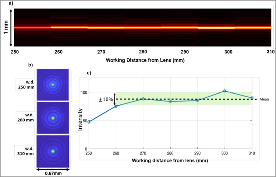 Uniform peak intensity over the extended depth-of-focus (DOF)